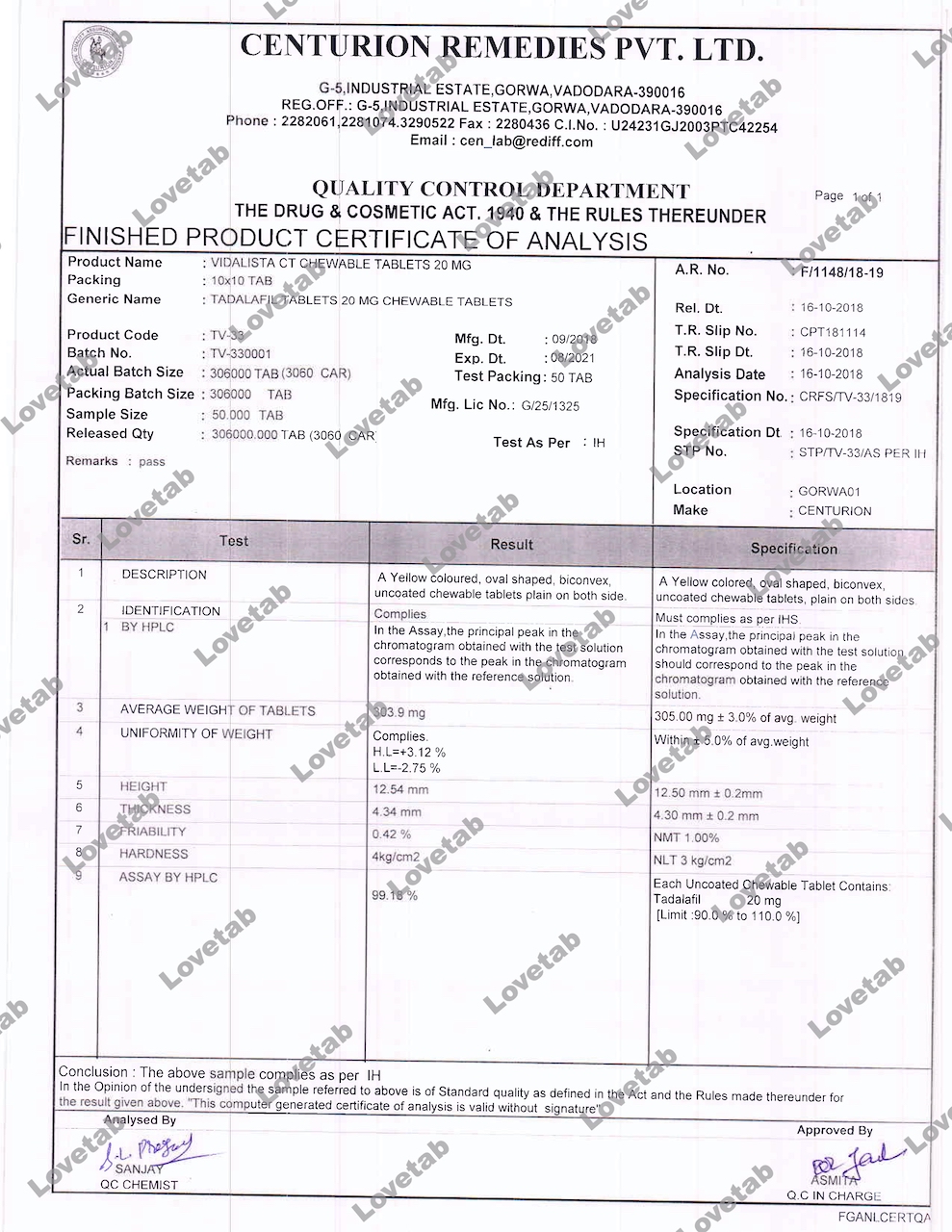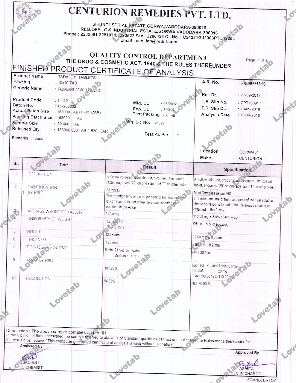 Сертификат на таблетки Сиалис (Тадалафил)